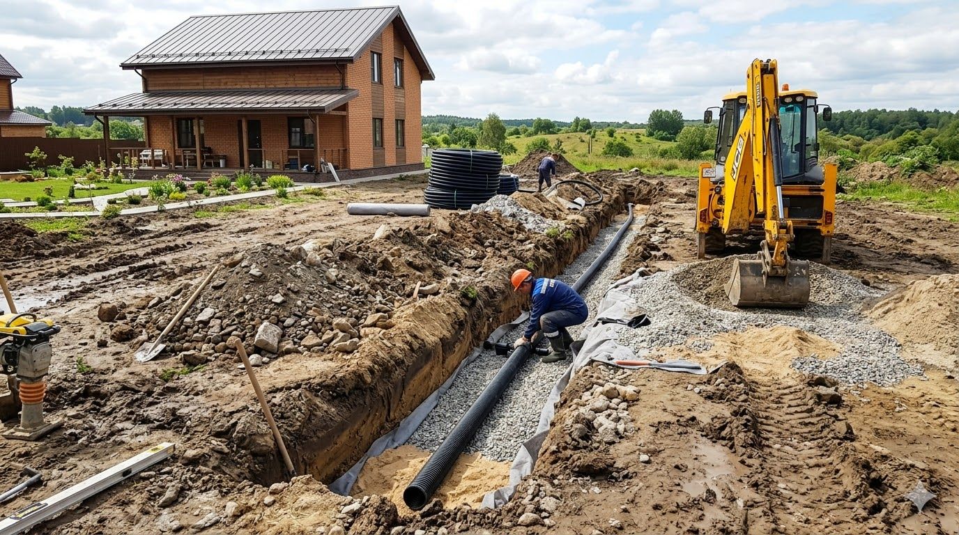 Первая ошибка — экономия на уклоне. Без правильного наклона вода просто стоит в трубах. Вторая — отказ от геотекстиля, что ведёт к быстрому заиливанию.