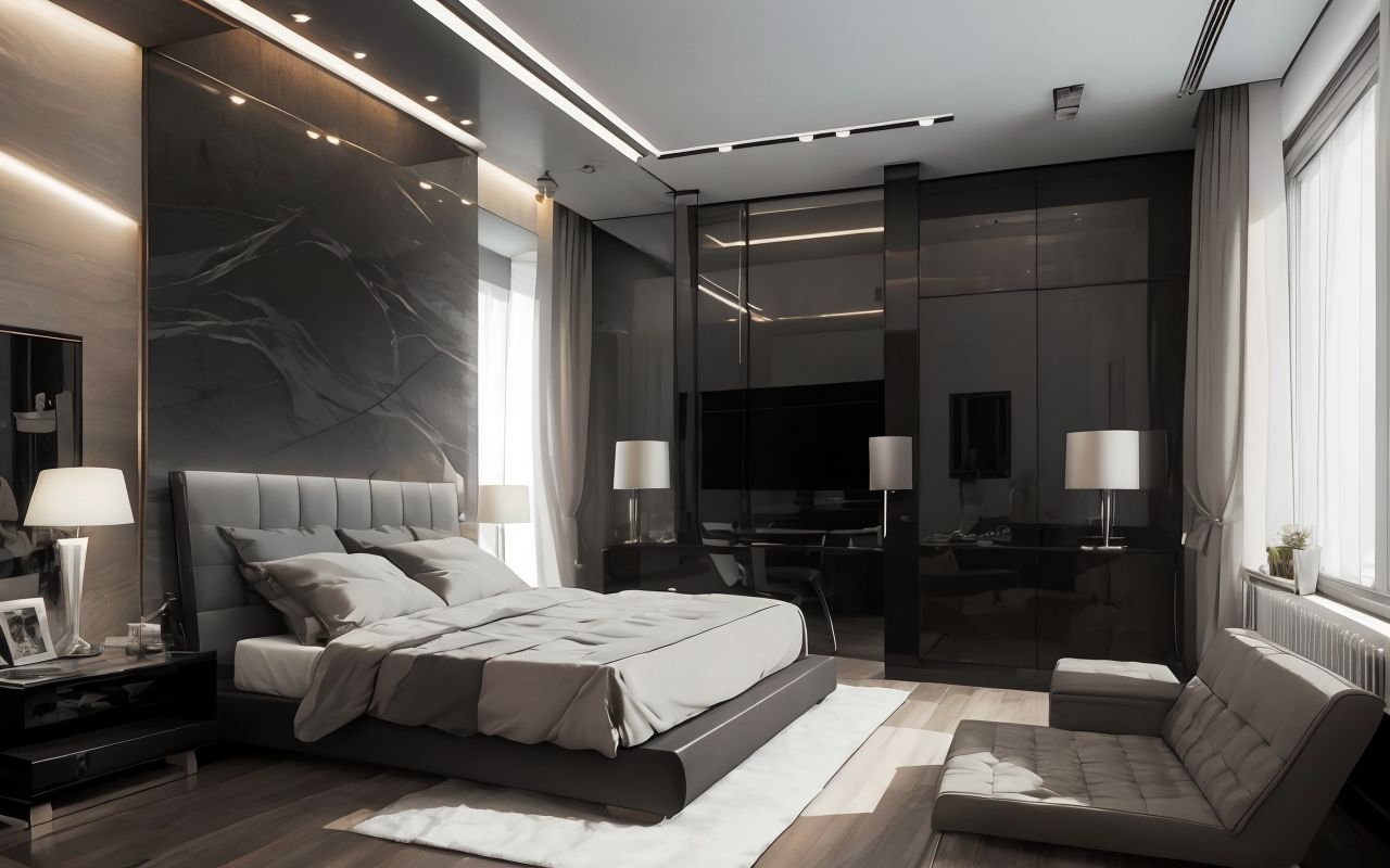 - Контраст текстур: сочетание гладких и шероховатых поверхностей, матовых и глянцевых элементов, использование дерева, металла, пластика и стекла.